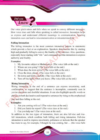 high and gradually falling to convey the fi nality of the sentence. Also, questions,
