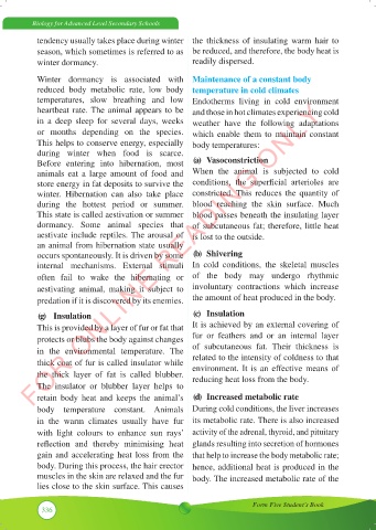 retain body heat and keeps the animal’s (d) Increased metabolic rate