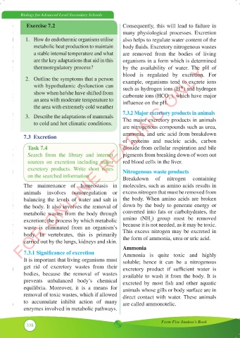 7.3.1 Significance of excretion Ammonia is quite toxic and highly