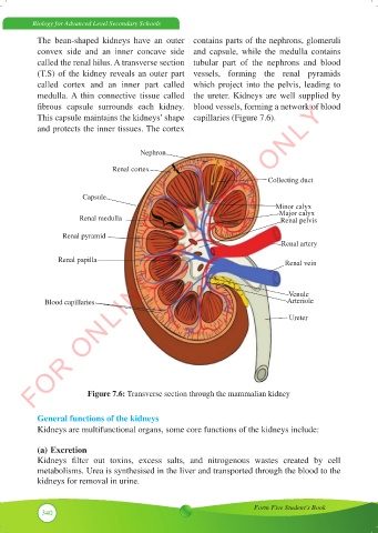 Figure 7.6: Transverse section through the mammalian kidney