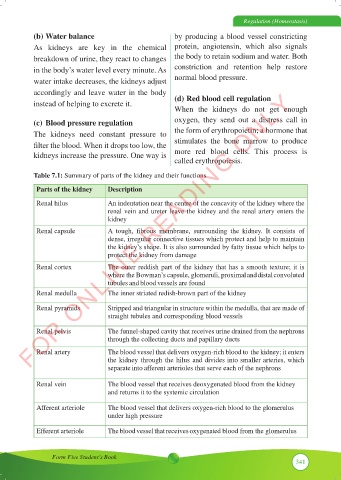 Table 7.1: Summary of parts of the kidney and their functions