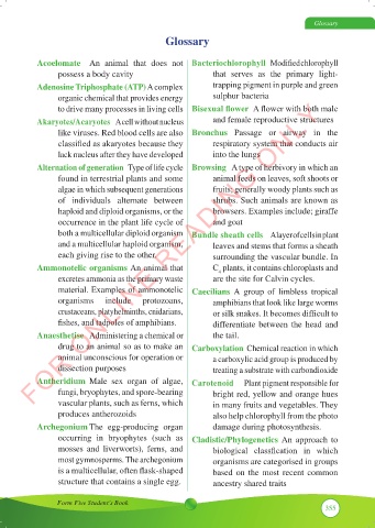 Acoelomate An animal that does not Bacteriochlorophyll Modified chlorophyll