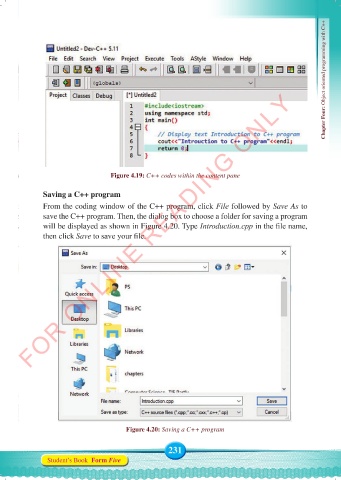 Figure 4.19: C++ codes within the content pane Chapter Four: Object oriented programming with C++
