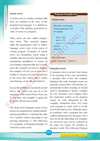 error belongs, or the line just before it. interprets the code. Semantic errors are
