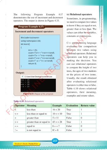 cout<<”x++ = “<<x++<<endl; relational operators. Relational