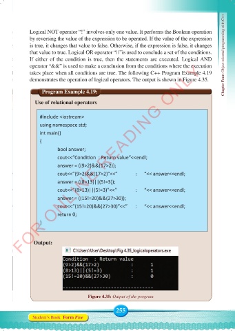 demonstrates the operation of logical operators. The output is shown in Figure 4.35.