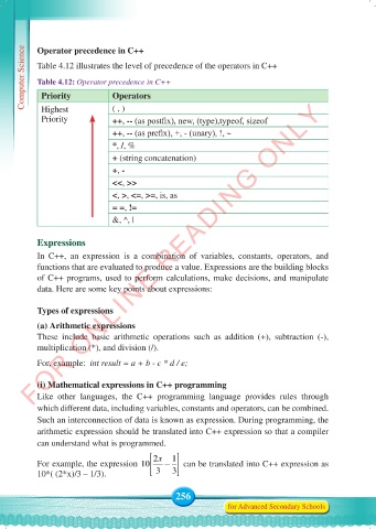 Table 4.12 illustrates the level of precedence of the operators in C++