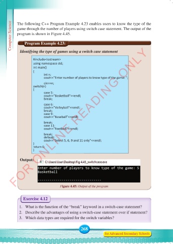 Computer Science The following C++ Program Example 4.23 enables users to know the type of the