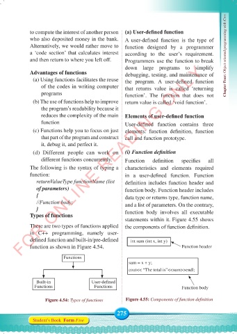 Figure 4.54: Types of functions Figure 4.55: Components of function definition