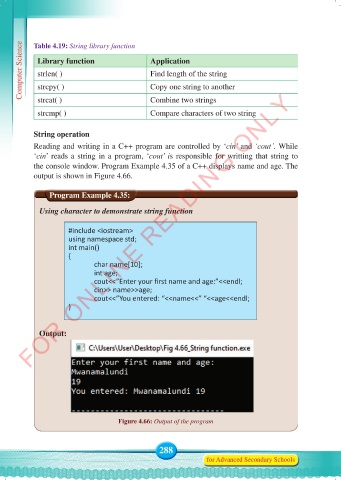 Computer Science Table 4.19: String library function Application