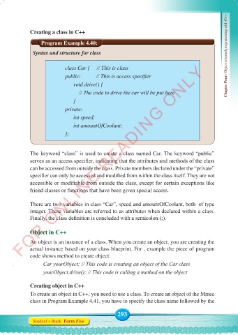 Syntax and structure for class Chapter Four: Object oriented programming with C++