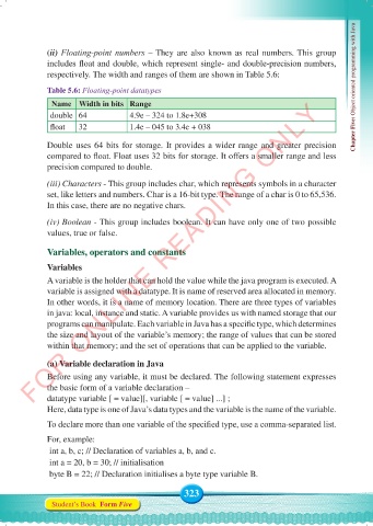 Table 5.6: Floating-point datatypes Chapter Five: Object oriented programming with Java