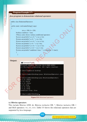 and Shift operators: <<, >>, >>>. Table 5.9 shows the relational operators that are