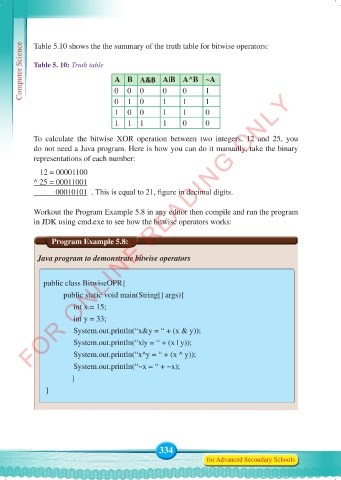 Computer Science Table 5.10 shows the the summary of the truth table for bitwise operators: