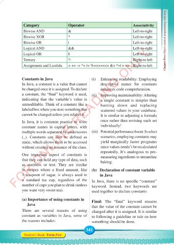Bitwise OR | Left-to-right Chapter Five: Object oriented programming with Java