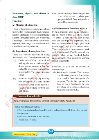 (a) Meaning of a function Chapter Five: Object oriented programming with Java