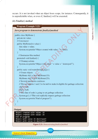 (ii) Finalize() method Chapter Five: Object oriented programming with Java