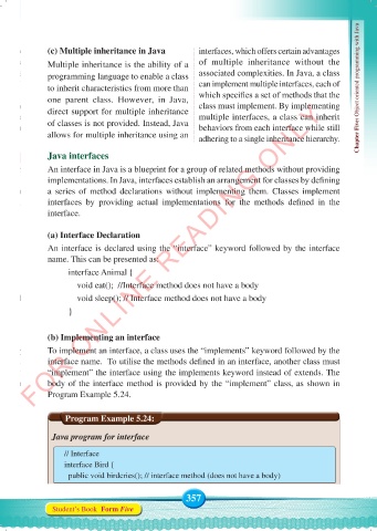 to inherit characteristics from more than can implement multiple interfaces, each of Chapter Five: Object oriented programming with Java