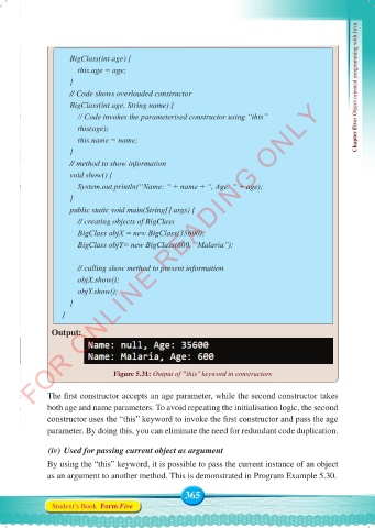 // Code shows overloaded constructor Chapter Five: Object oriented programming with Java