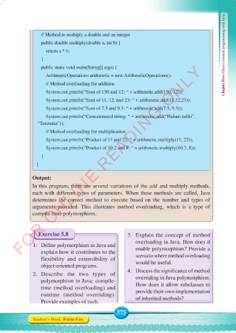 arguments provided. This illustrates method overloading, which is a type of
