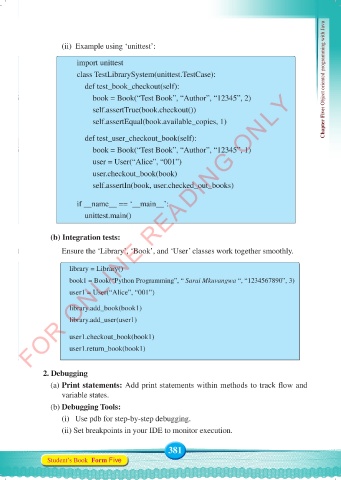 def test_book_checkout(self): Chapter Five: Object oriented programming with Java