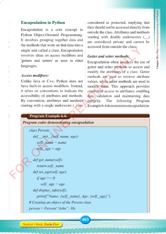 It involves grouping together data and are considered private and cannot be Chapter Six: Object oriented programming with Python