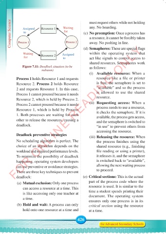 Computer Science Process 1 Resource 1 Waiting (c) No preemption: Once a process has
