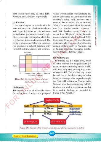 for an attribute. It refers to a group of Figure 8.9 as “StudID.”