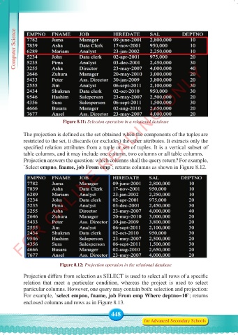 Figure 8.12: Projection operation in the relational database