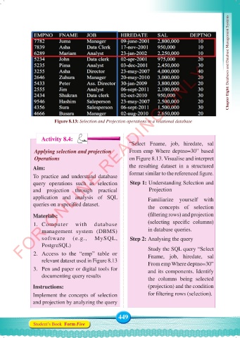 Figure 8.13: Selection and Projection operations in a relational database Chapter Eight: Databases and Database Management Systems