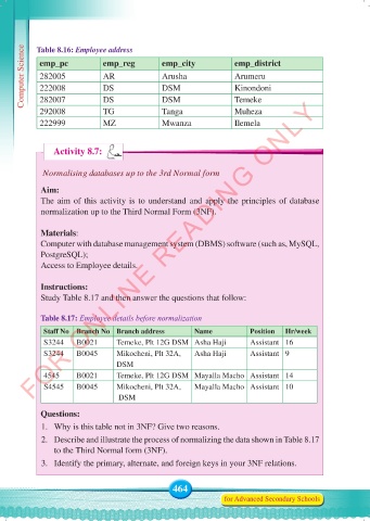 Computer Science Table 8.16: Employee address emp_city emp_district