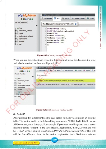 Figure 8.19: Creating database and table Chapter Eight: Databases and Database Management Systems