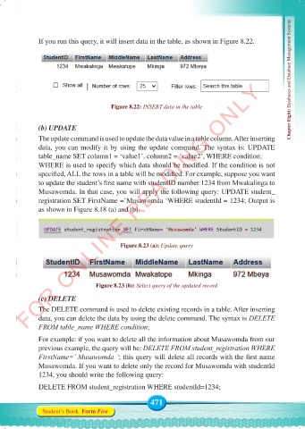 Figure 8.22: INSERT data in the table Chapter Eight: Databases and Database Management Systems
