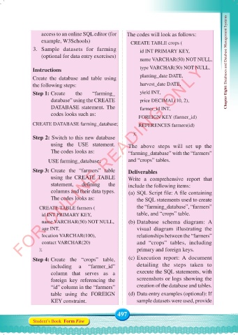 example, W3Schools) CREATE TABLE crops (