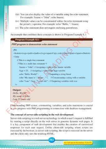 Computer Science (iii) You can also display the value of a variable using the echo statement.