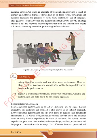 audience directly. On stage, an example of presentational approach is stand-up