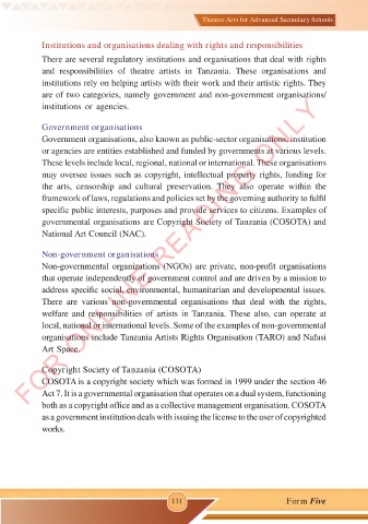 governmental organisations are Copyright Society of Tanzania (COSOTA) and