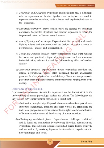 (g) Emotional intensity: Expressionism theatre emphasises emotions and