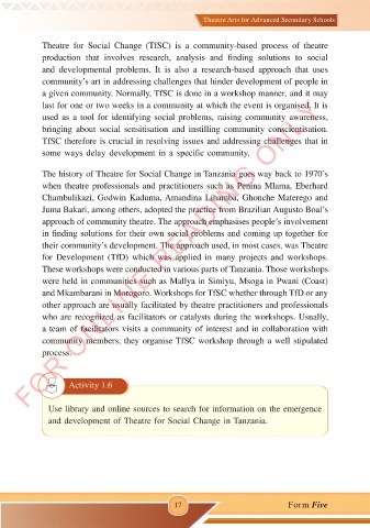 Theatre for Social Change (TfSC) is a community-based process of theatre