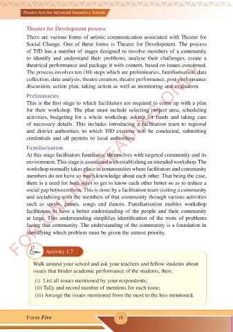 such as sports, games, songs and dances. Familiarisation enables workshop