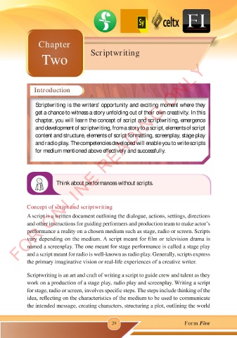 chapter, you will learn the concept of script and scriptwriting, emergence