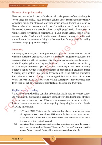 and what time the scene occurs. When writing a screenplay, the scene heading is