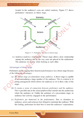 (a) The thrust stage accommodates large audience. A thrust stage is capable
