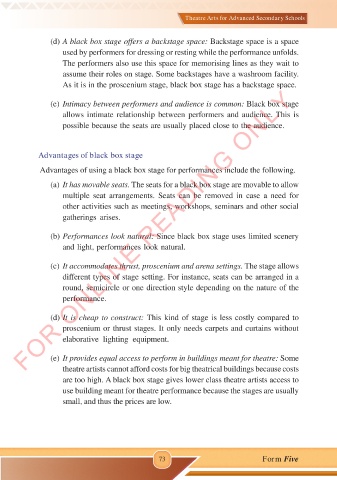 (d) A black box stage offers a backstage space: Backstage space is a space