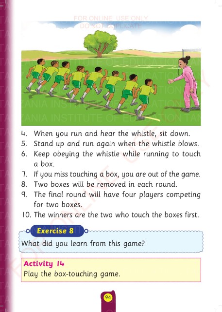 4. When you run and hear the whistle, sit down. TANZANIA INSTITUTE OF EDUCATION
