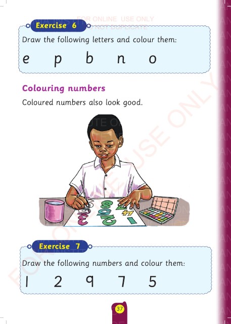 Draw the following numbers and colour them: