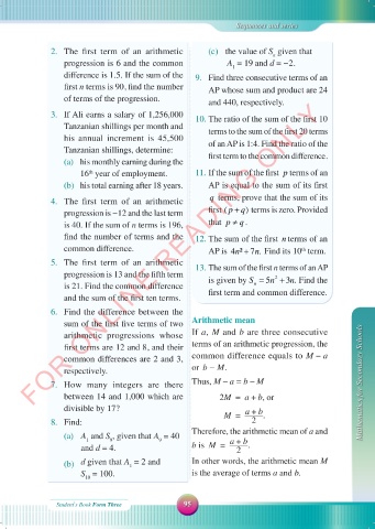 2. The first term of an arithmetic (c) the value of S given that