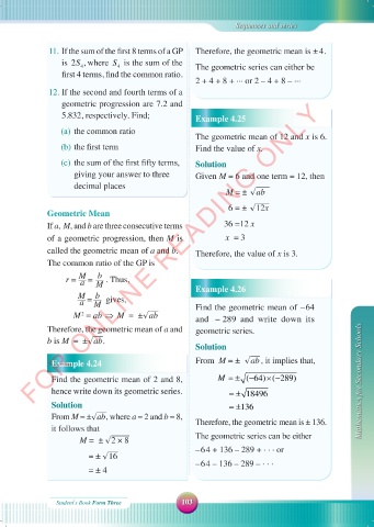 11. If the sum of the first 8 terms of a GP Therefore, the geometric mean is ± 4.