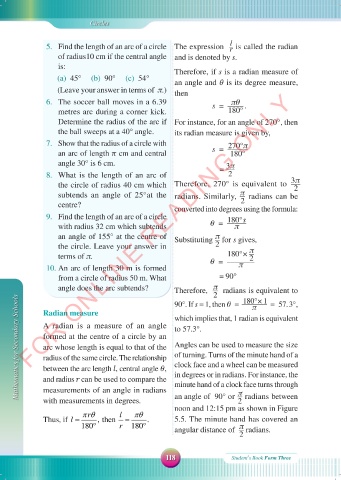 Mathematics for Secondary Schools A radian is a measure of an angle to 57.3°.