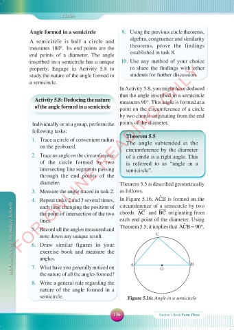 Mathematics for Secondary Schools 5. Record all the angles measured and Theorem 5.5, it implies that ACB 90 .= °.